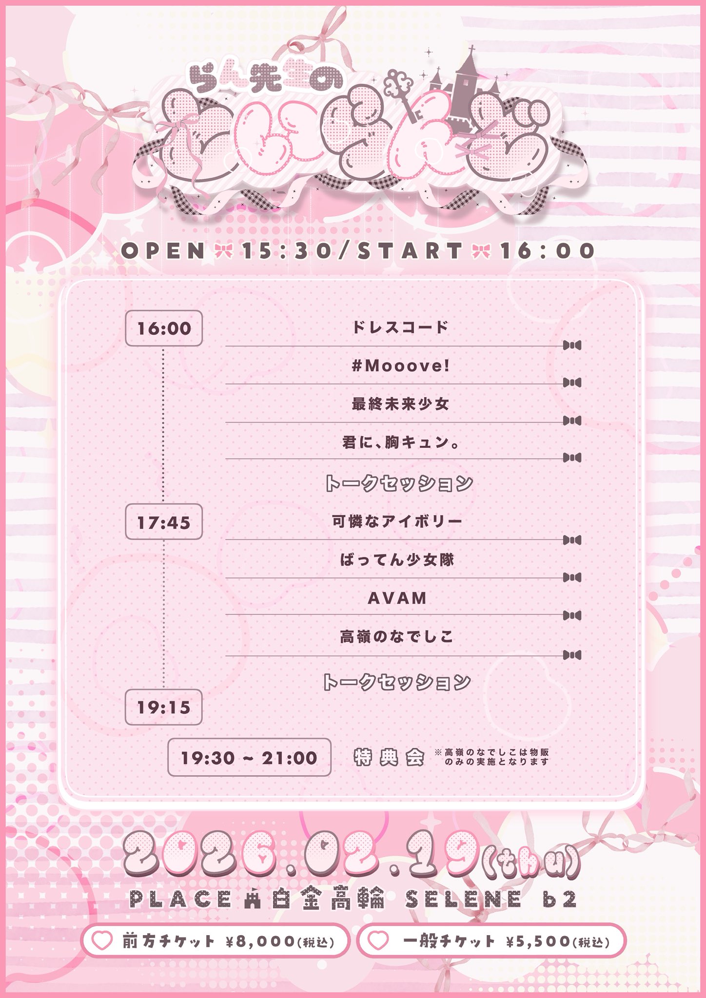出演:AVAM/可憐なアイボリー/君に、胸キュン。/最終未来少女/高嶺のなでしこ/ドレスコード/ばってん少女隊/#Mooove!/らん先生