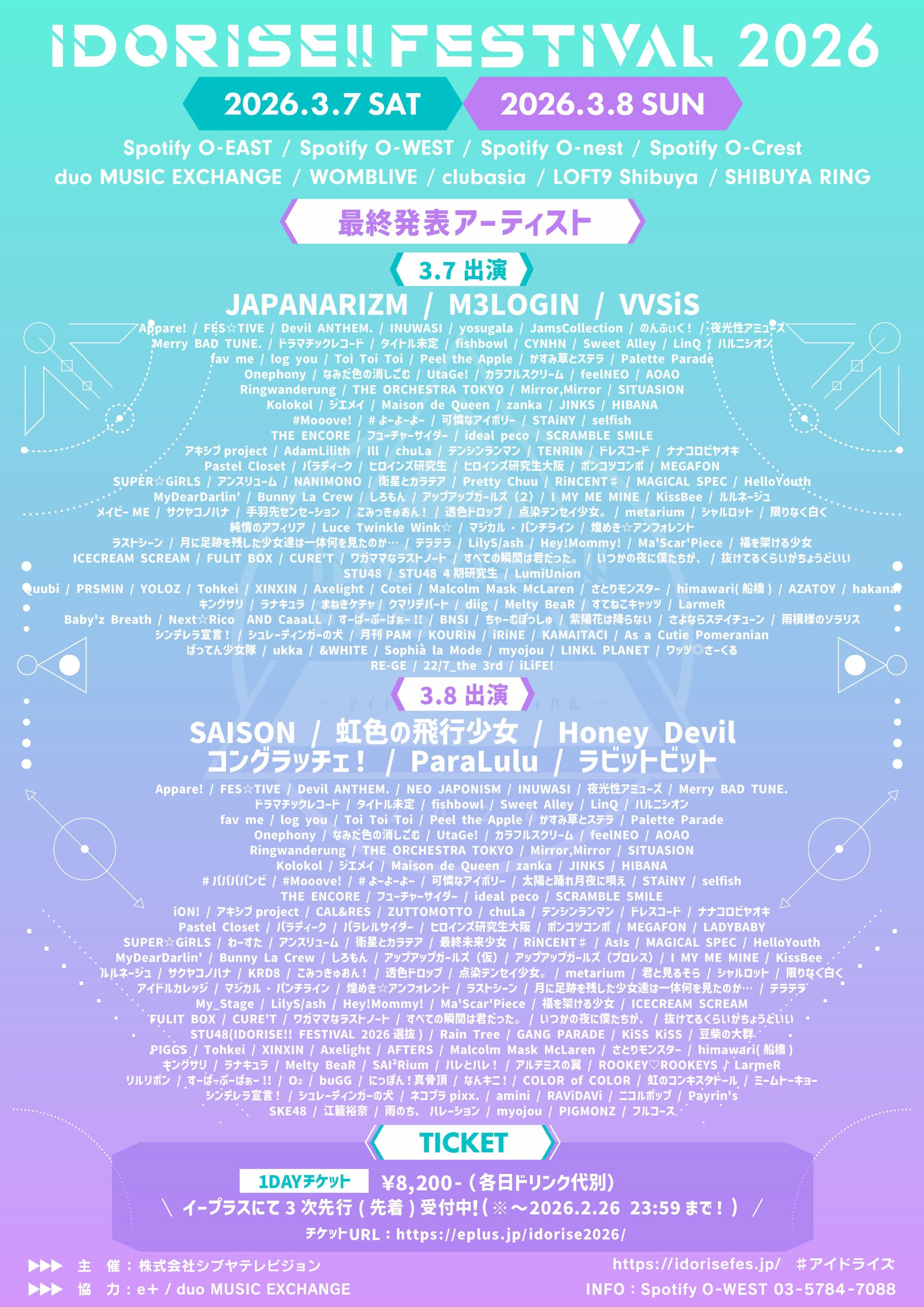 ・VIPチケット:¥16,000(VIP観覧エリアはO-EASTのみ)