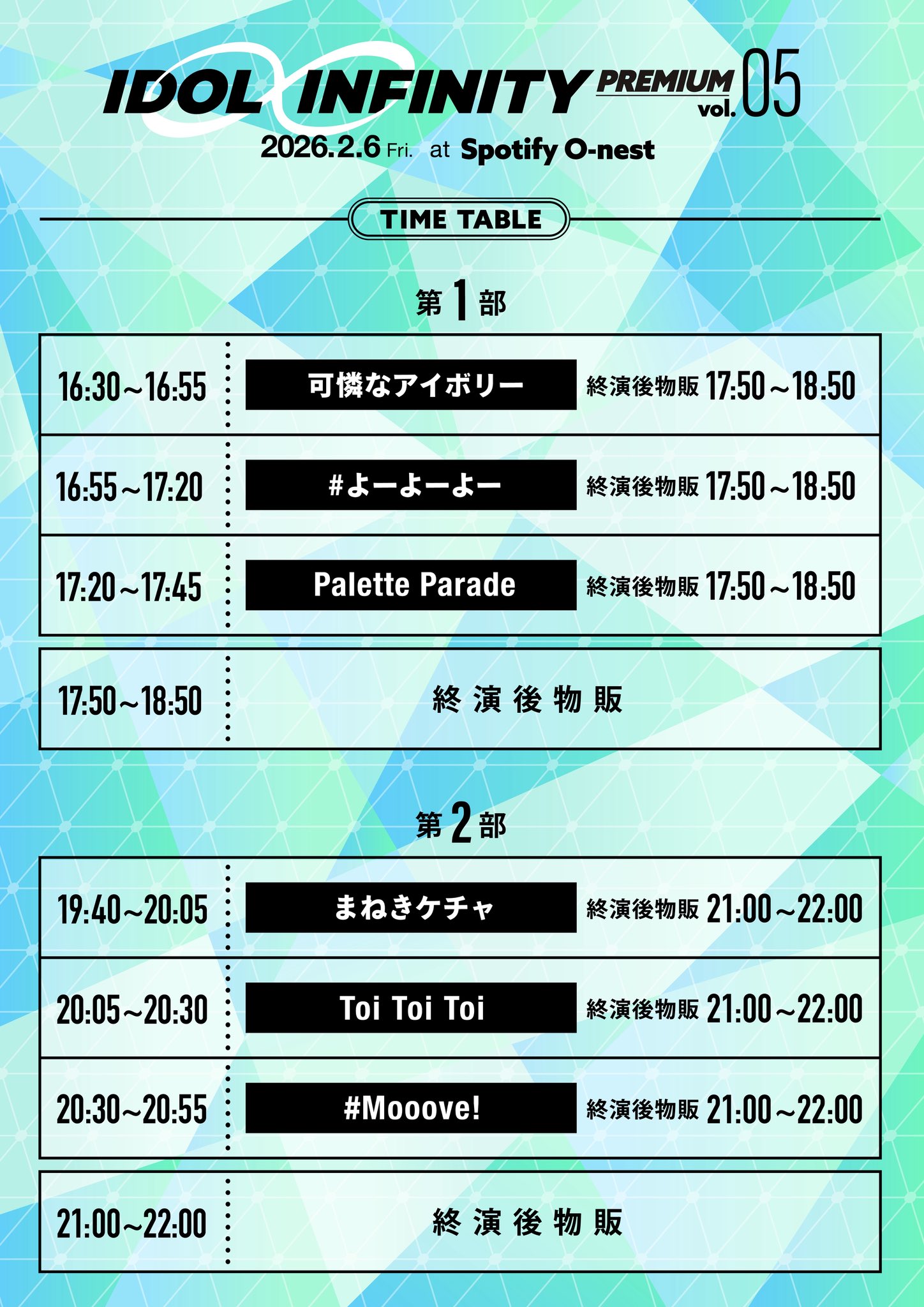 ※整理番号順入場、1ドリンク別、6歳以上チケット必要